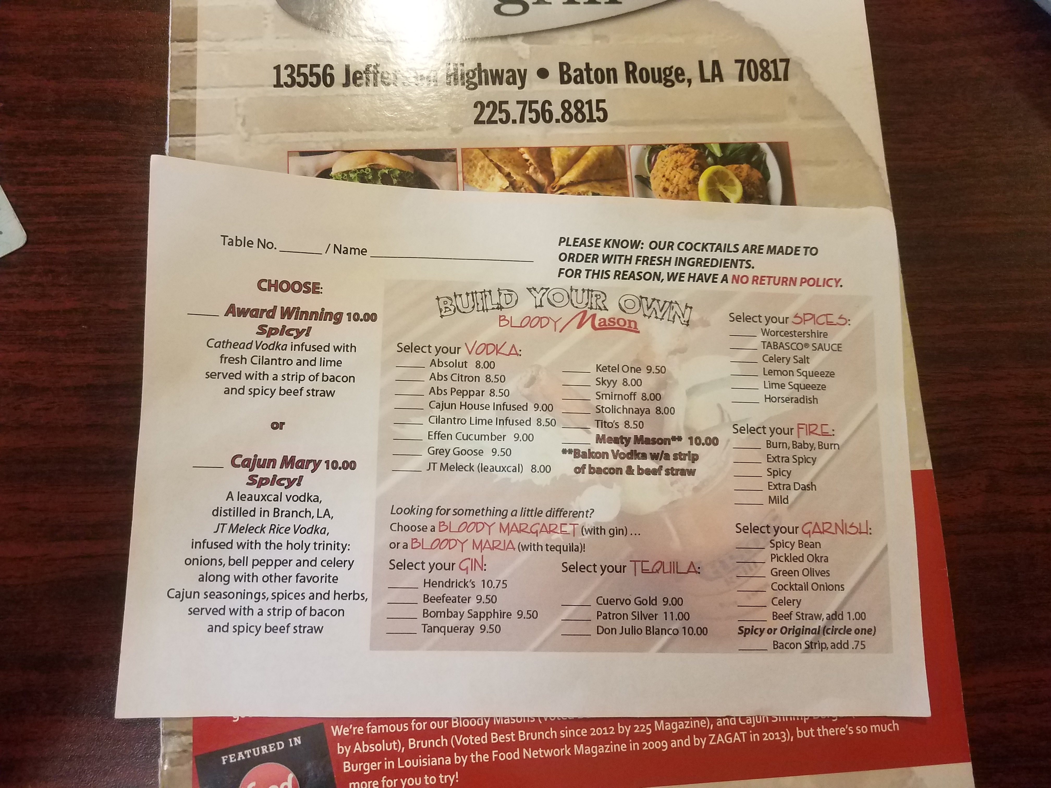 There is a great opportunity for building your own bloody mary, and they have several ingredients to choose from. I ordered the award winner.