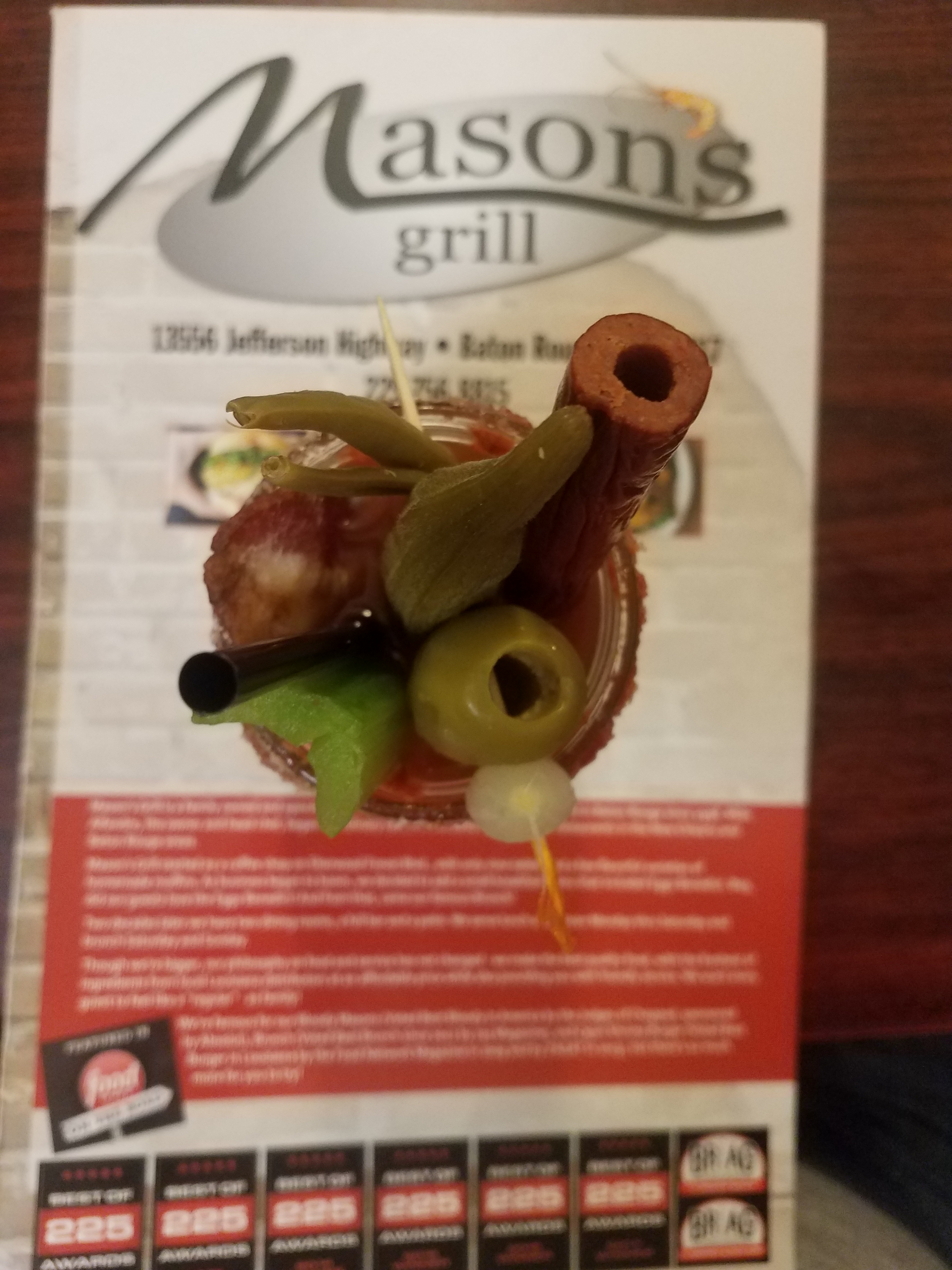 When I was sitting at the bar drinking my Andygator, I asked the bar tenders where the best bloody mary is located. Almost as if scripted and in unison, both responded “Mason’s Grill”. They even won a award for their bloody. So I made sure that we were to travel to this grill for dinner and a bloody drink.