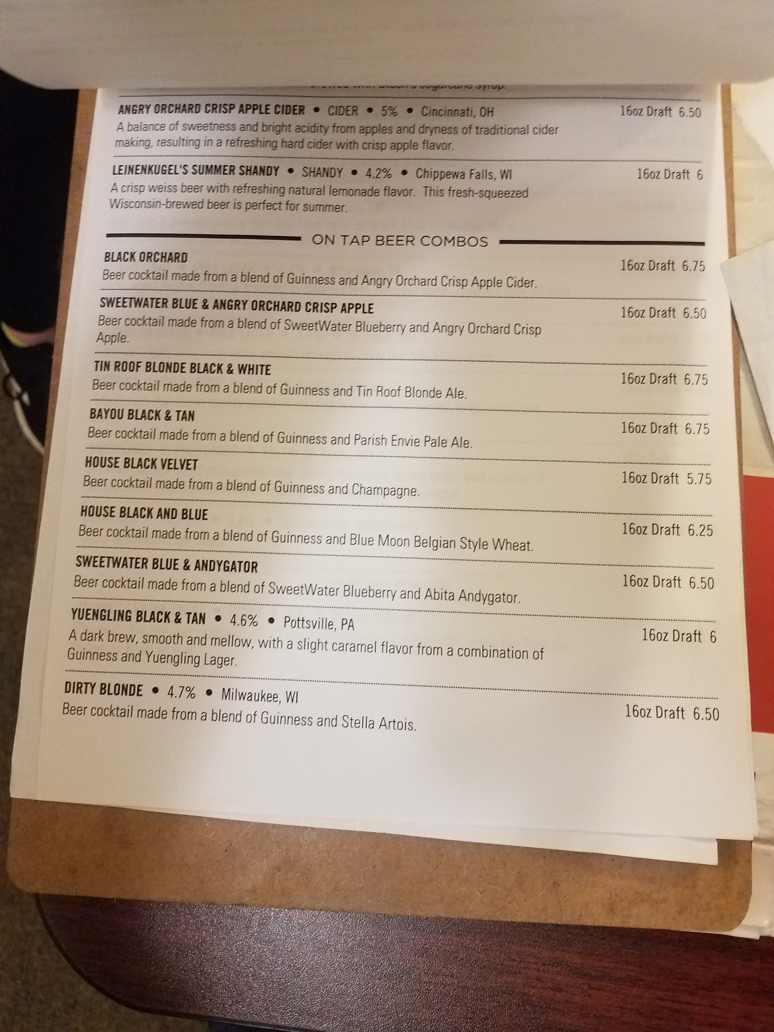 The list of black and tans was lengthy and I am not a fan of Guinness, but I love me some black and tans.