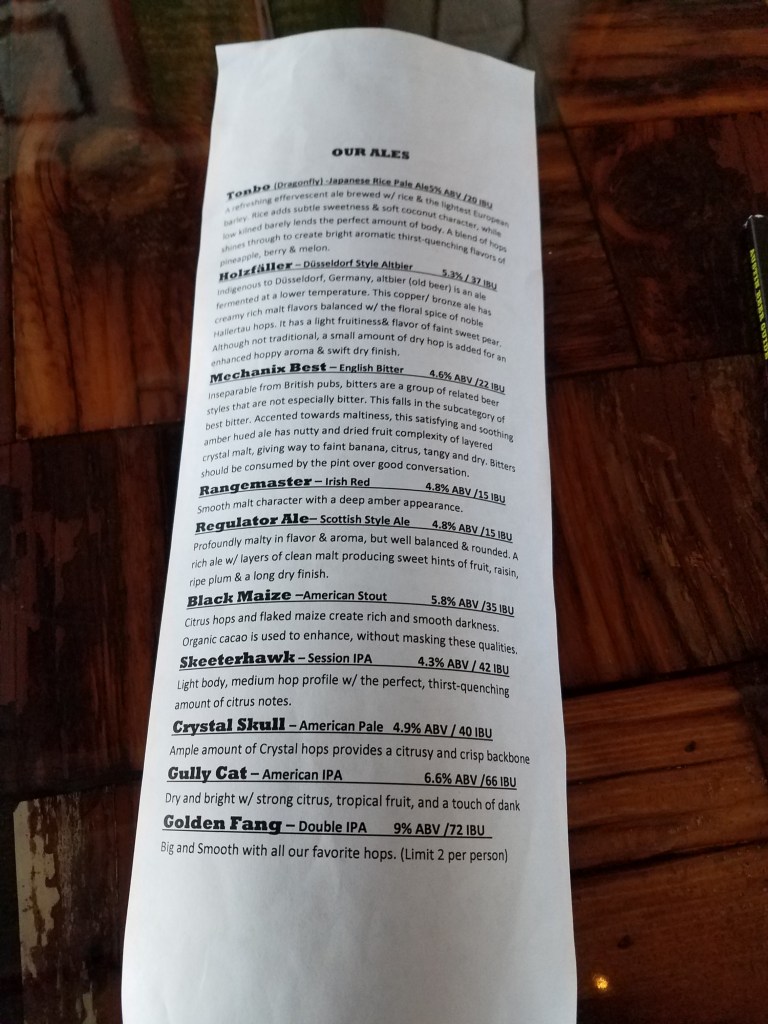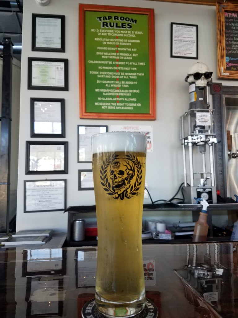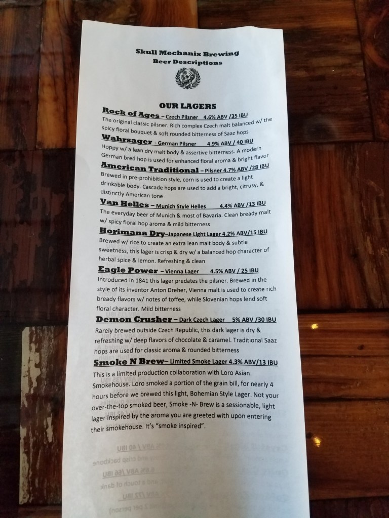 The Smoke N Brew was the least favorite of the 3 from my evening at Skull Mechanix. It wasn’t a peaty taste, but you can taste the smoke flavor. The grain is smoked for over 4 hours before being brewed into a lager. It wasn’t bad and I bet it would go really well with a BBQ.