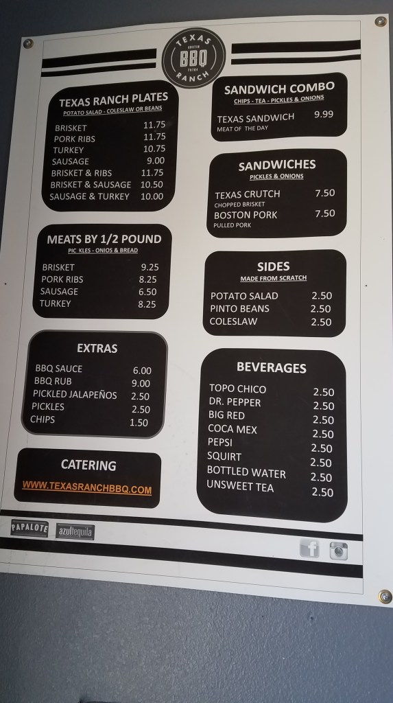 In Austin, everyone recommended BBQ and tacos. I was unable to get to Franklin’s BBQ as they’re so busy you must get in line before it opens. It will have to be a future endeavor with Jamie. I did try another place, simply named Texas Ranch BBQ. The BBQ trailer is run from inside the Papalote Taco House restaurant and you can order BOTH tacos and BBQ. If you have a indecisive belly, this is a great option for you. Get your hunk of red meat followed by some new takes on the traditional taco.