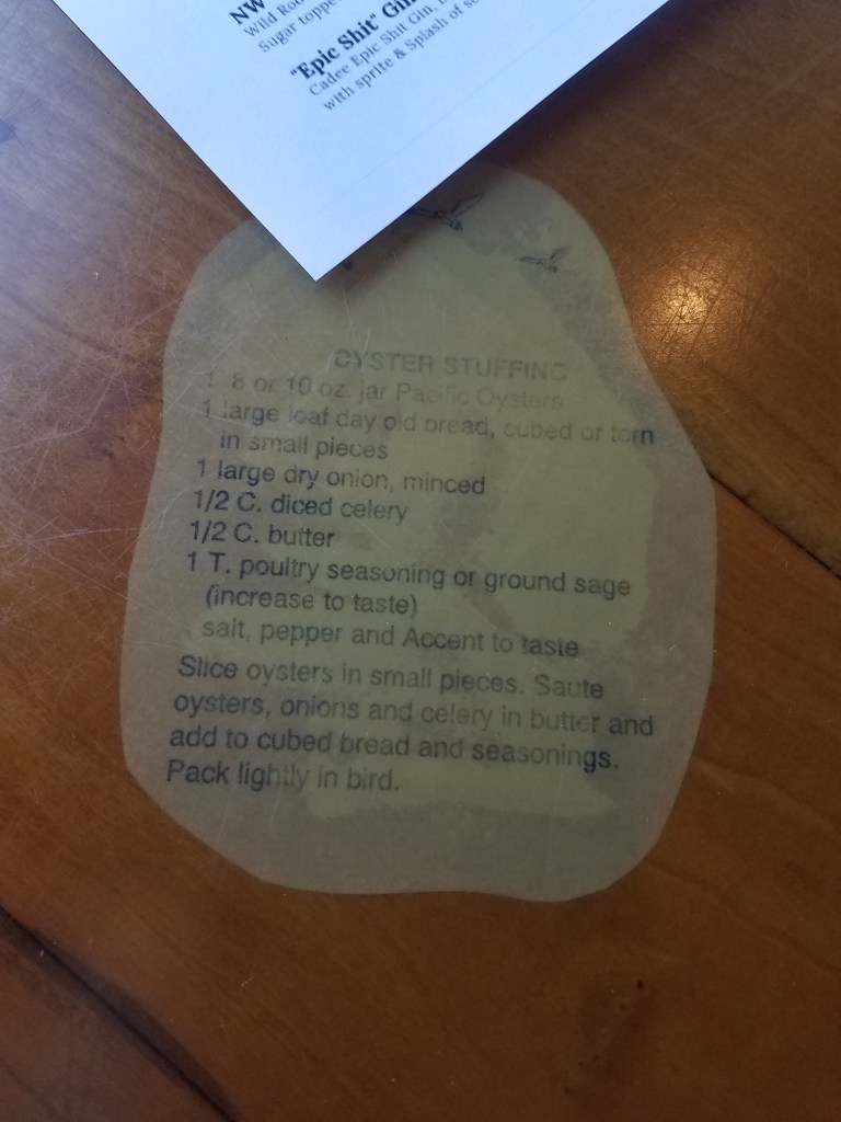 What is also neat is they have a ton of recipes for oysters and seafood dishes lacquered into the tables. You can learn while you eat and drink.