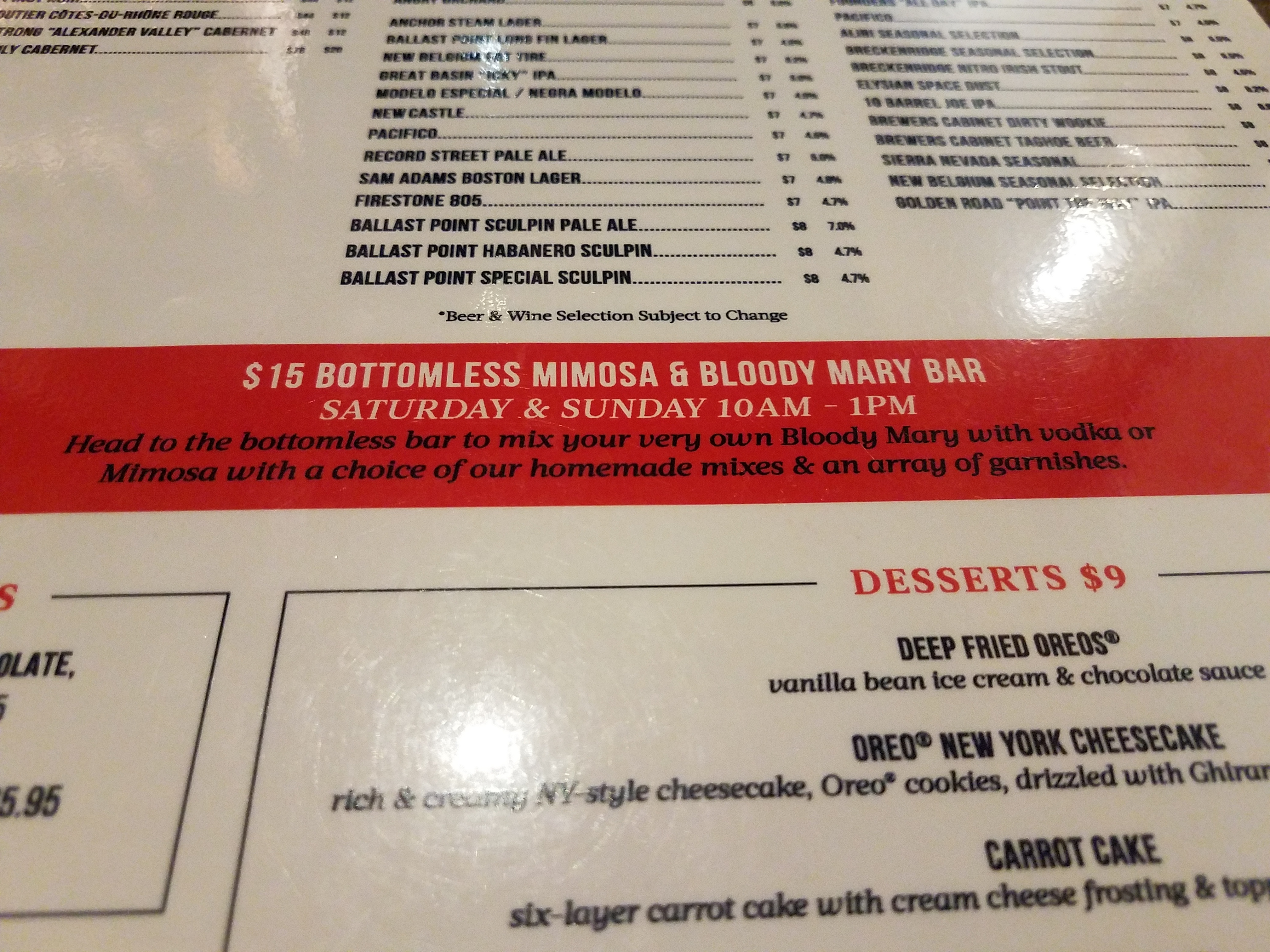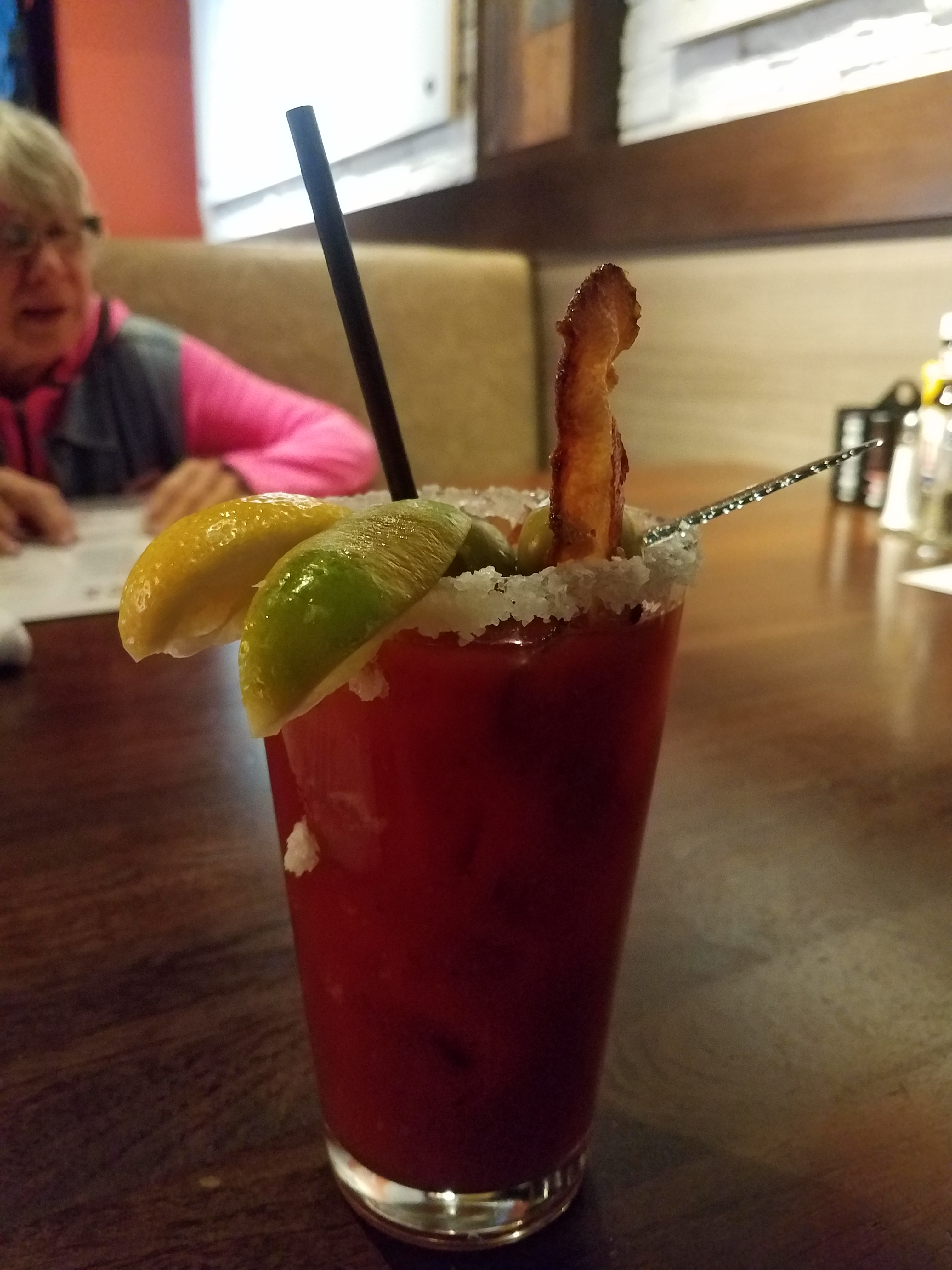One, I repeat, one piece of bacon. A single leaflet from a head of romaine lettuce. That was this “bacon lovers favorite bloody mary”. Bleh…. it was missing flavor and it was expensive.